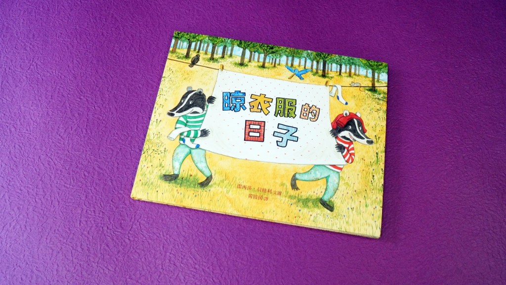 | 熱烈推薦閱讀分享:色彩繽紛的生活心情(黃筱茵/兒童文學工作者)閱讀和翻譯《晾衣服的日子》的時候,我忍不住漾起微笑。故事的主角是一對整天忙個不停的獾兄弟,眼看勞碌的獾媽媽一件接一件忙著處理家事,獾兄弟在一旁晃來晃去忙玩耍,相信媽媽們都會心裡酸酸甜甜,感覺好氣又好笑。這本俏皮的小品不但反映了全天下媽媽的感受與生活,更很成功的用豐富的圖像道出文字裡沒有盡述的故事,呈現家庭生活的奇妙滋味。